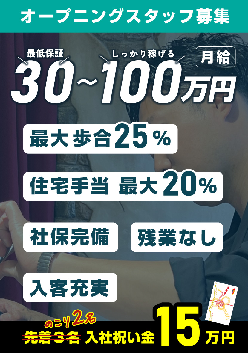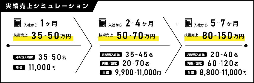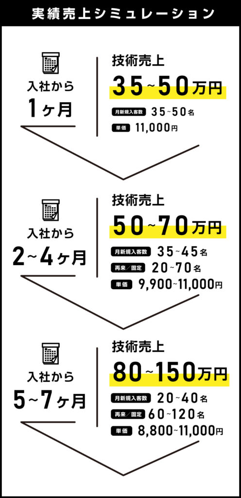 #新規スタッフの月間新規顧客数50名、 #再来率60%以上、 #給料30万円〜100万円