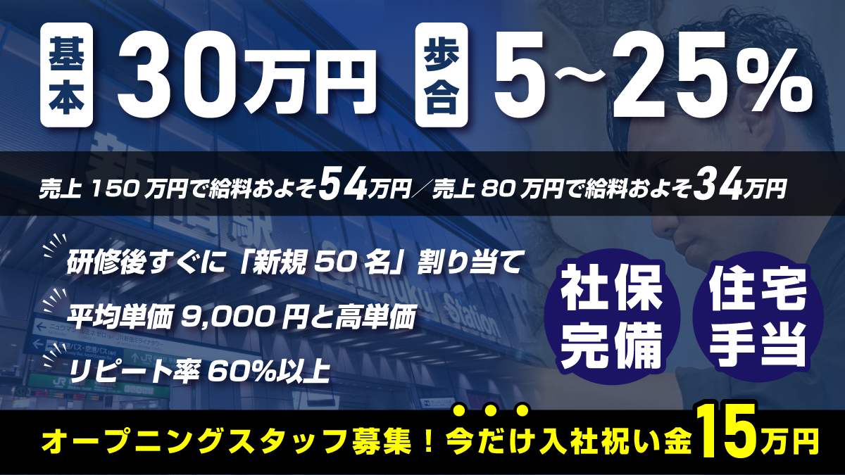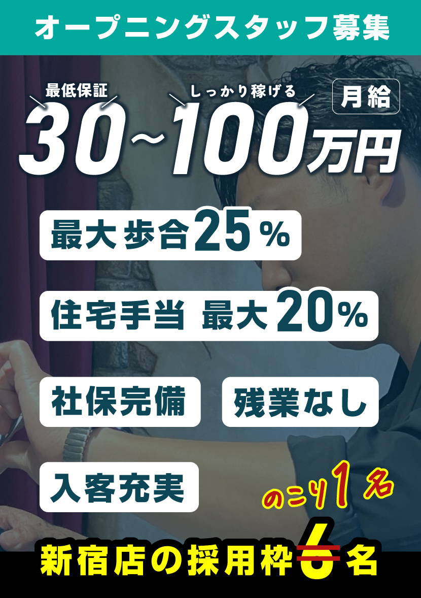 #新規スタッフの月間新規顧客数50名、 #再来率60%以上、 #給料30万円〜100万円